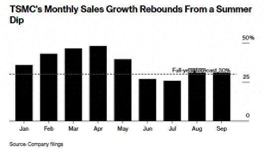 根据台积电公布的月度销售数据测算,截至9月底的三个月,该公司营收总额达9899亿新台币(约合325亿美元),超出市场分析师平均预期的9628亿新台币。得益于市场对AI的长期乐观情绪,这家亚洲市值最高的公司股价今年以来已累计上涨逾30%。